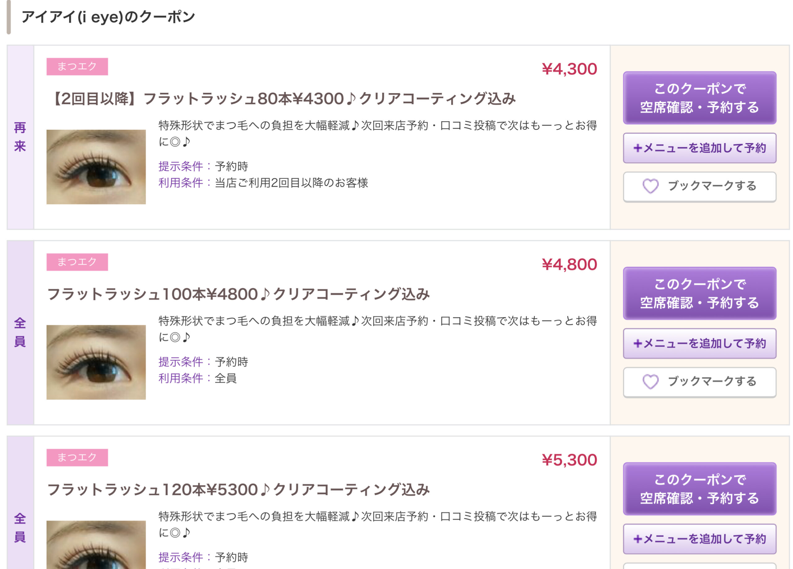こんにちは♪天六マツエクi eyeですっ ^ ^お問い合わせを多く頂きましたので当店クーポンに2回目以降の再来のお客様クーポンを作成いたしました◎メニュー欄からでもクーポン欄からでもご予約可能です♪◎